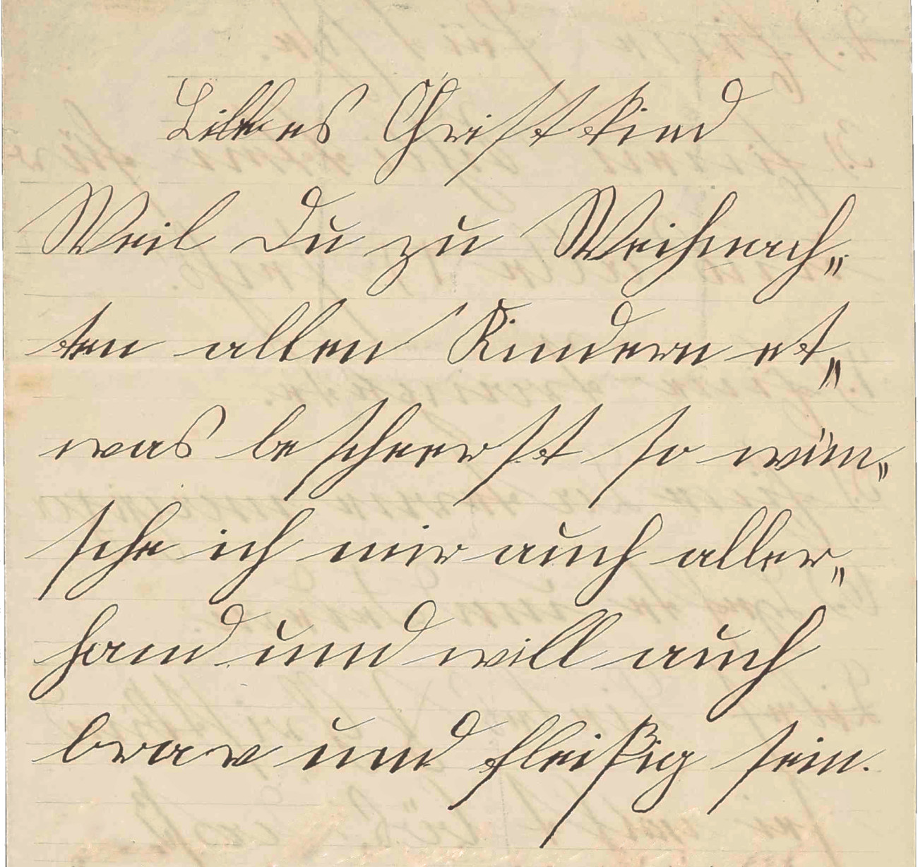 Schon vor über 150 Jahren schrieben Kinder vor Weihnachten Briefe mit ihren Geschenkewünschen an das Christkind. Ein solcher Wunschbrief ist auch im Landeskirchlichen Archiv, genauer im Nachlass von Alfred Mehl, vorhanden.